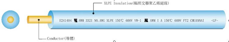 Description: Related temperature:150℃ Rated voltage:600V Flame test:UL VW-1及CSA FT1 vertical flame test Insulation:Low halogen or halogen-free XLPE Conductor:30~08AWG Solid or stranded Tinned or copper conductor Standard:UL758、UL1581、CSA C22.2 No.210.2 Application:For internal wiring of electronic ,electrical ,electromechanical and transformer equipment |